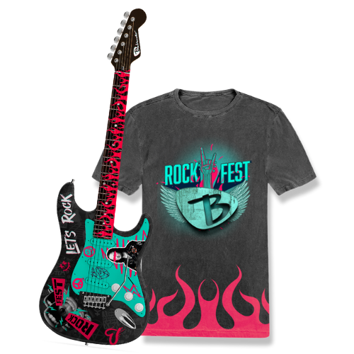 Tente a sua sorte nos sorteios durante o evento! Você pode ganhar camisetas personalizadas do Rock Fest ou uma guitarra exclusiva!